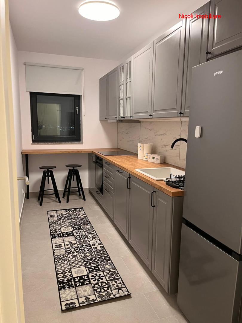 apartament (et 8 din 10) cu 2 camere decomandate (60mp cu balcon) baie cu cada, hol, bucatarie, in bloc nou/2024, mobilat complet (la prima utilizare), incalzire in pardoseala si centrala electrocasnice (masina spalat vase, frigider, cuptor&plita electrice, hota, masina spalat rufe cu uscator, aspirator, fier&masa calcat), TV, 2 aparate aer conditionat, videointerfon. Loc de parcare. In proximitate (langa bloc), Mega Image concept store, centru fitness cu piscina, cafenea, restaurant, curatatorie, etc), loc de joaca pt copii, in cartier e si un parc.